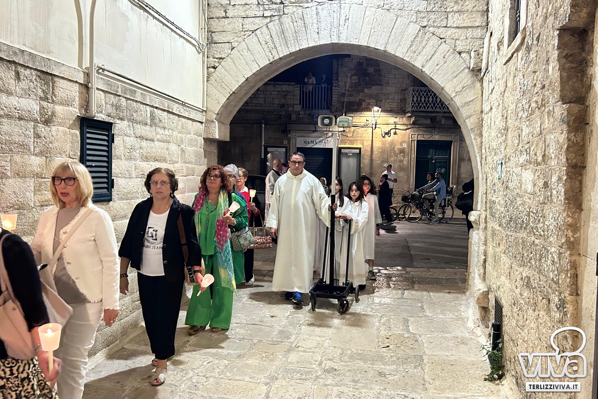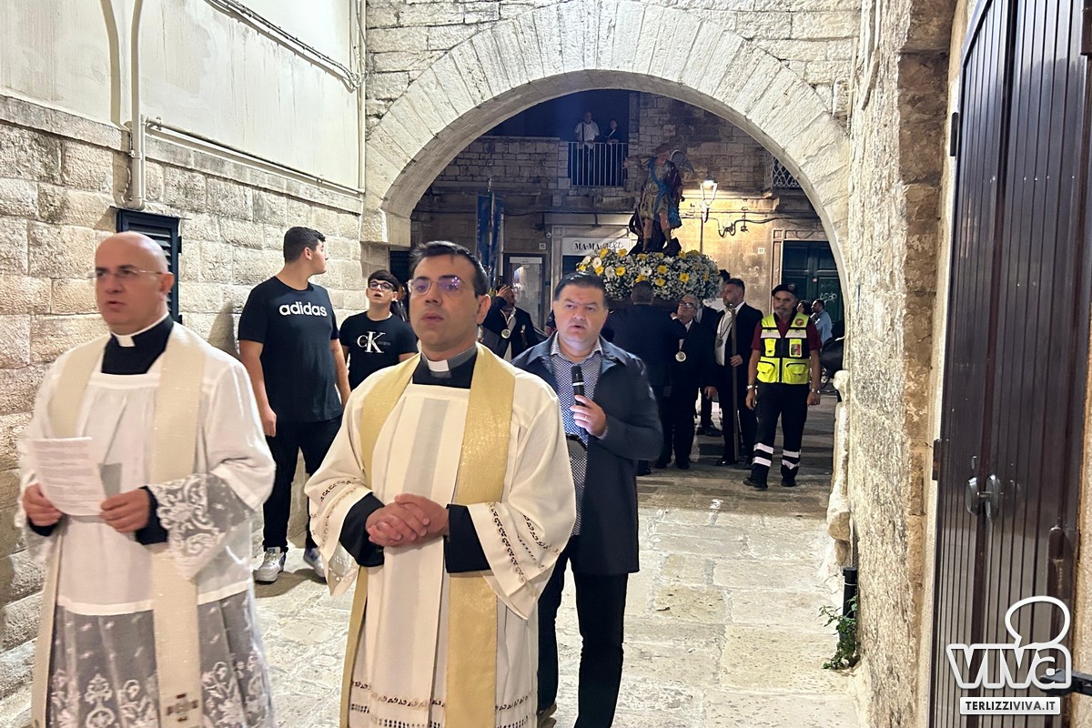La processione, partendo dalla Concattedrale in Piazza don Tonino Bello, è proseguita per Corso Umberto, via Strada Angarano, via G. Superba, via S. Maria, via don Tonino Bello, via Tauro, via Annunziata, Largo Lago dentro, via P. Rutigliano, via Ospedale, vico Ospedale, Via Dabormida, via M. De Napoli, Piazza Cavour, Corso Umberto I, Piazza don Tonino Bello, abbracciando il cuore della città vecchia, fino al rientro in Concattedrale.