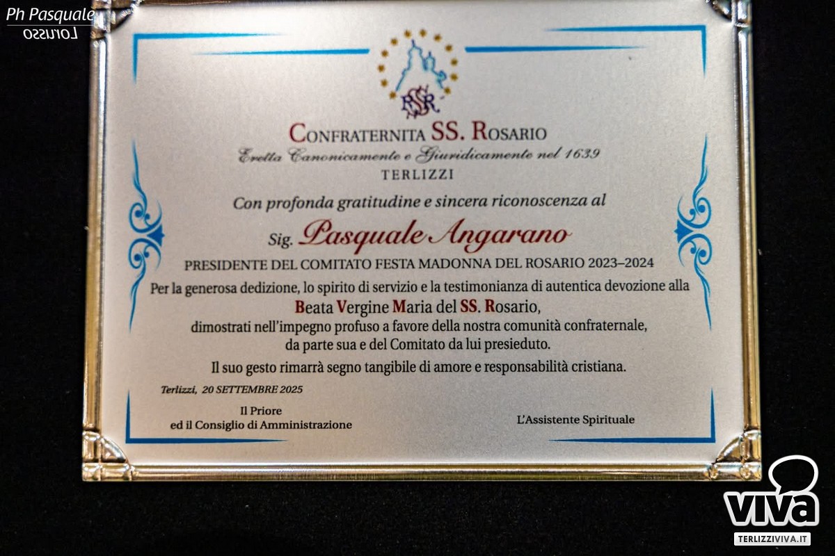 Sabato 20 settembre, nella chiesa confraternale del SS Rosario, la comunità di fedeli terlizzesi ha potuto vivere un momento dal grande valore culturale: la presentazione al pubblico del restaurato dossale ligneo in foglia d'oro zecchino, riportato al suo splendore originale. Presenti i vertici della confraternita omonima e del Comitato Festa Madonna del Rosario, al cui ex presidente, Pasquale Angarano, è stato fatto dono di una pergamena a suggellare lo strettissimo rapporto tra i due sodalizi e per ringraziare il Comitato per il supporto fornito.