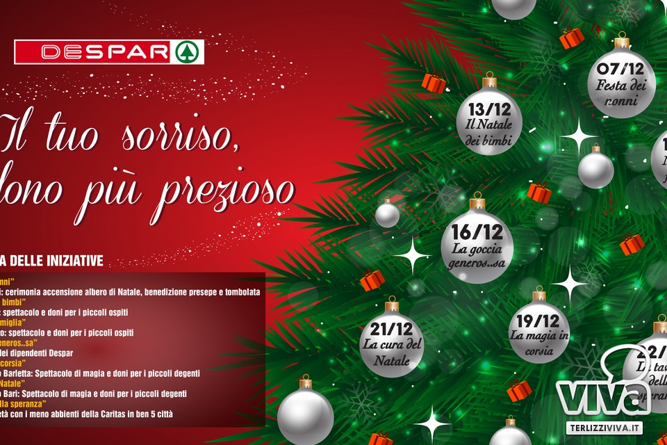Si chiama "Il tuo sorriso, il dono più prezioso" l'iniziativa di Despar per il Natale 2016, un programma di appuntamenti natalizi dediti a regalare un sorriso a chi è meno fortunato.