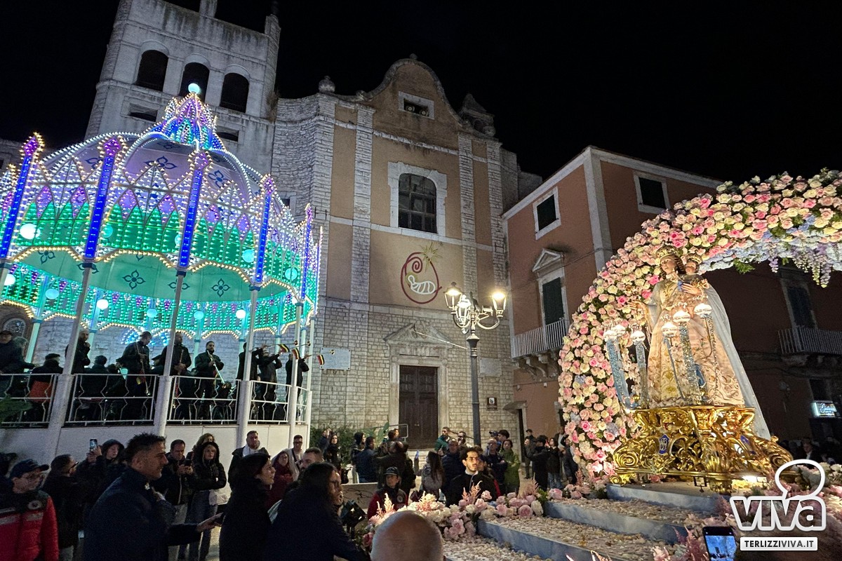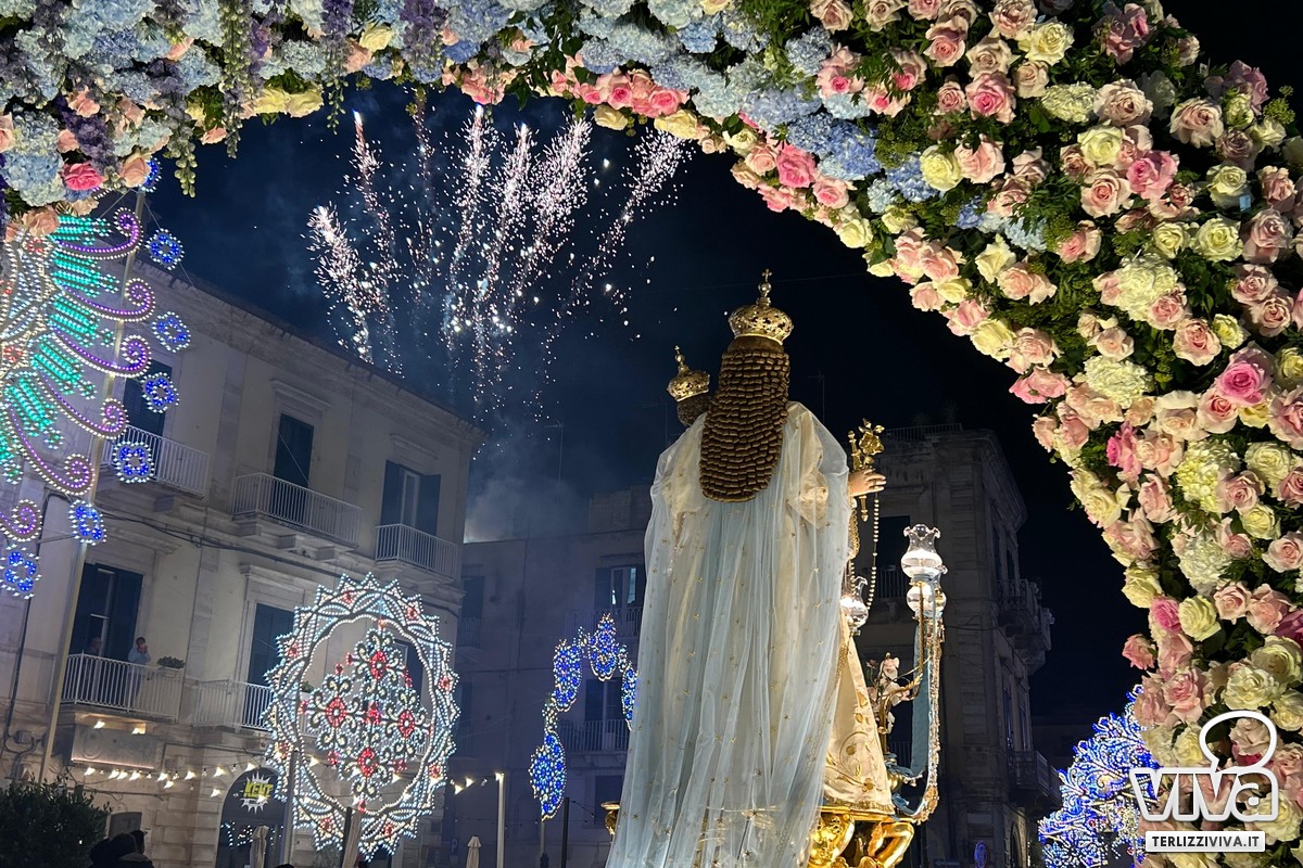 La serata intera, nonostante alcuni momenti di pioggia, ha proposto tutta la meraviglia e l'unione dei fedeli, delle famiglie, dei bambini, accorsi in centro storico e che hanno potuto ammirare il carro in processione, un evento sempre vissuto con attesa. Terlizzi ha trascorso una tre giorni di fede e devozione, con richiami artistici straordinariamente identitari.