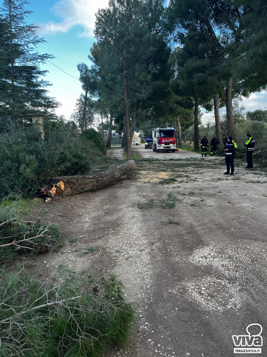 «Ancora una volta il maltempo mette a nudo la fragilità del nostro territorio e l'inerzia di chi lo amministra. Lo scorso fine settimane un imponente pino si è abbattuto sulla sede stradale in via Appia Traiana, proprio in prossimità di una villa abitata. Solo il caso ha voluto che l'episodio non si trasformasse in dramma, visto che la zona è frequentata da terlizzesi e il crollo avrebbe potuto avere conseguenze gravi se in quel momento fosse transitata una persona o anche una vettura. Sul posto sono intervenuti prontamente la Polizia Locale di Terlizzi e i Vigili del Fuoco, allertati da un residente a cui va il mio ringraziamento».