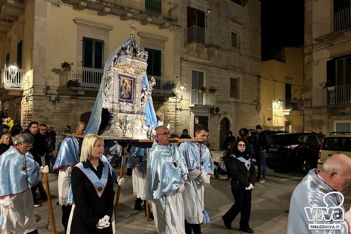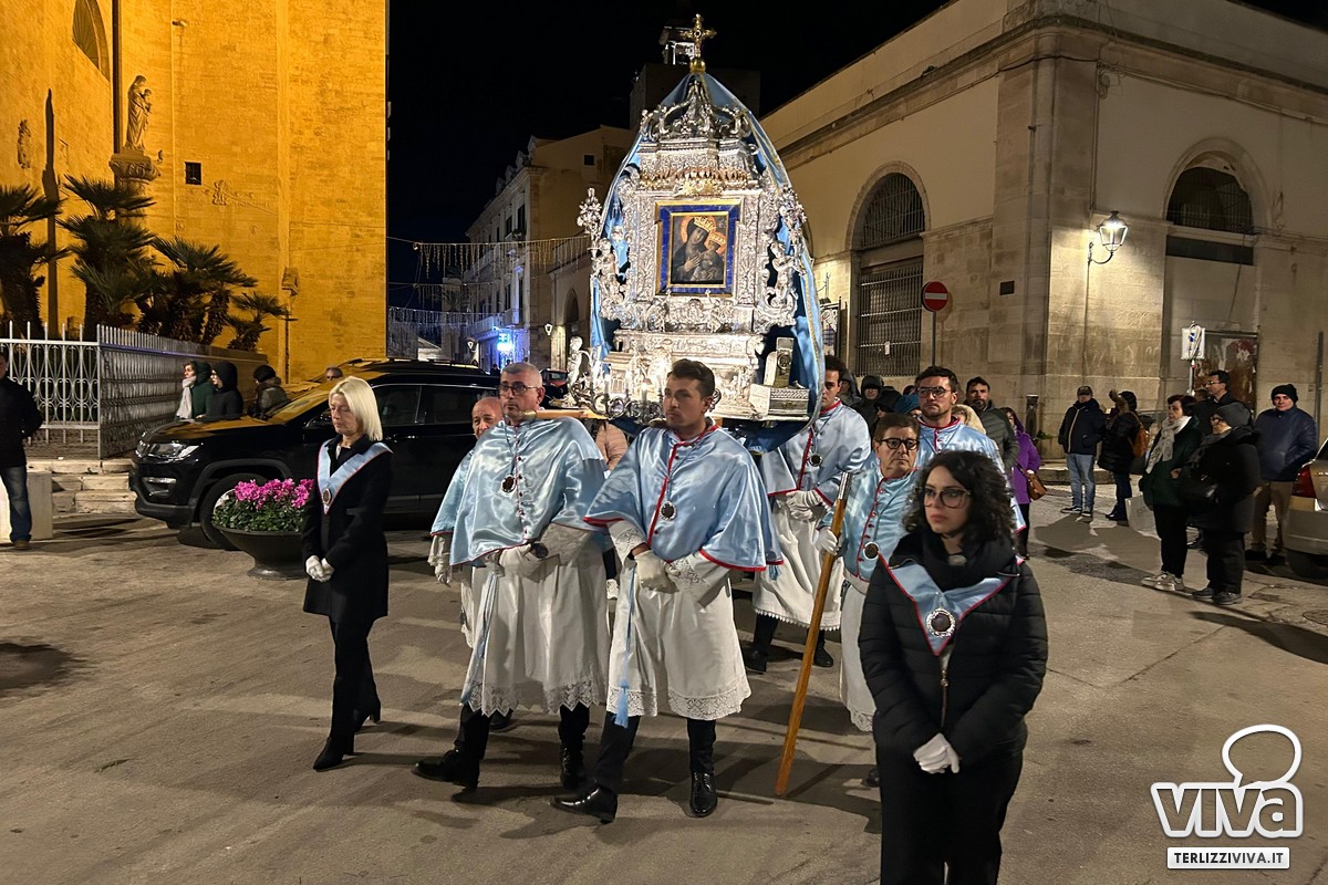 Prima del trasferimento serale della Sacra Icona in Concattedrale, alle ore 17.30 si era svolta in chiesa la recita del Rosario, seguito dalla Santa Messa delle ore 18.00 e dall'importante accoglienza dei nuovi confratelli e consorelle nella Confraternita alla Vergine dedicata.