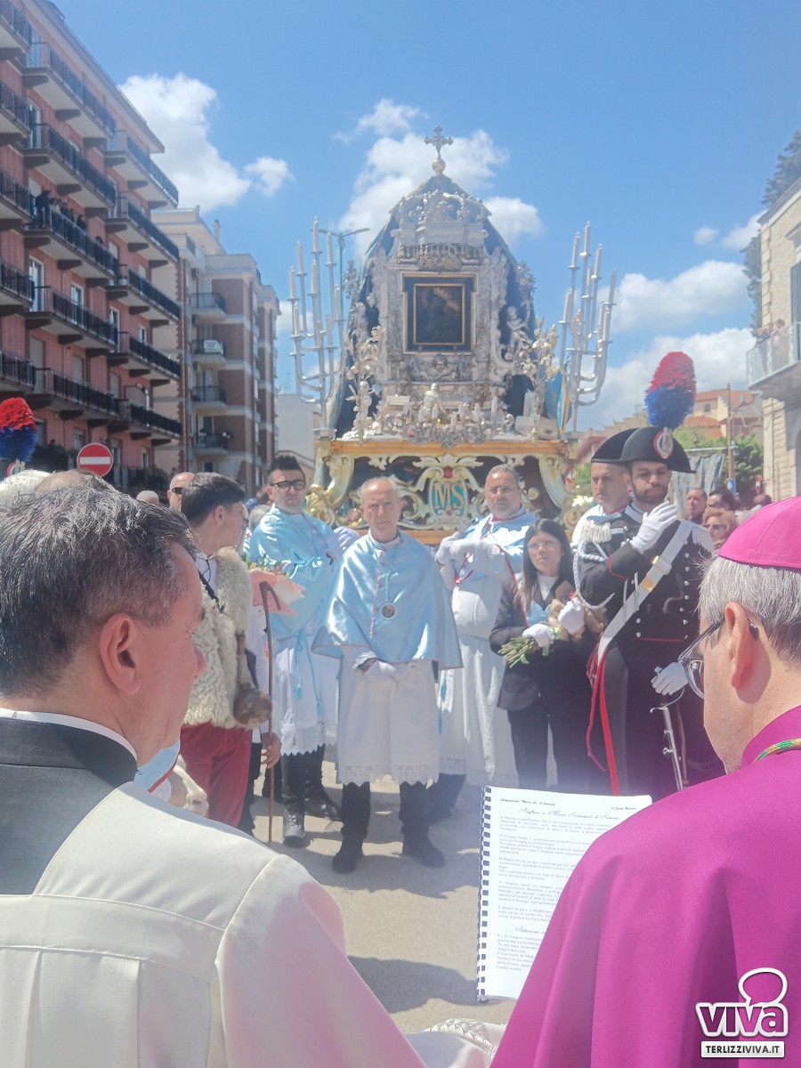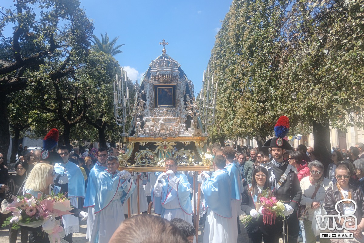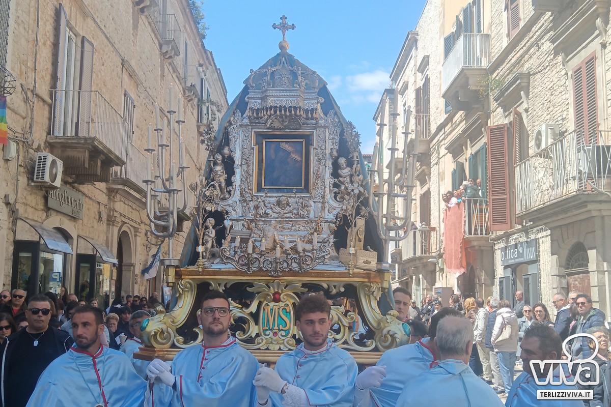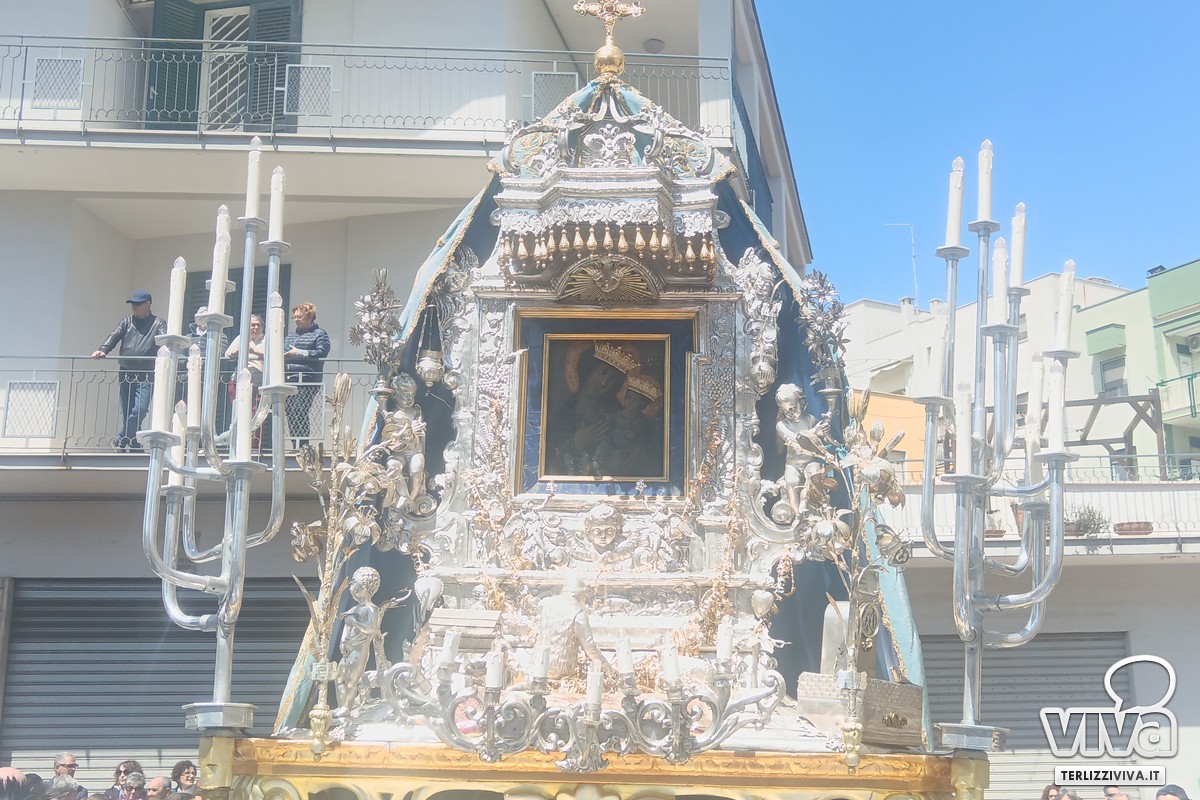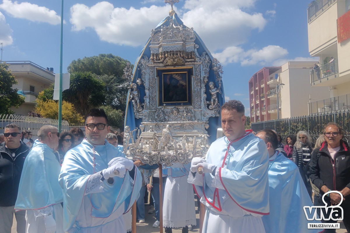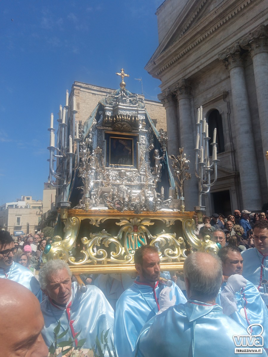 La sacra icona di Maria SS di Sovereto è stata portata oggi, 23 aprile, per le strade della Città dei fiori. Un momento commovente, atteso da tutta Terlizzi. È la Festa Maggiore di primavera, quella del risveglio di anime e corpi, quella che segna l'inizio di una stagione in cui la comunità di fedeli si ritroverà riunita sovente attorno alla sua fede.