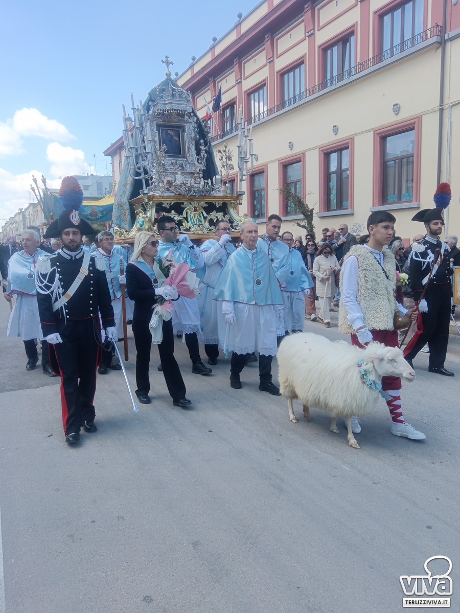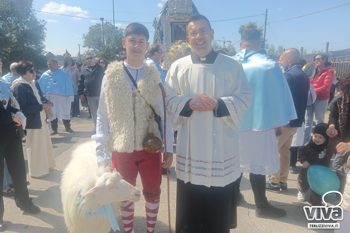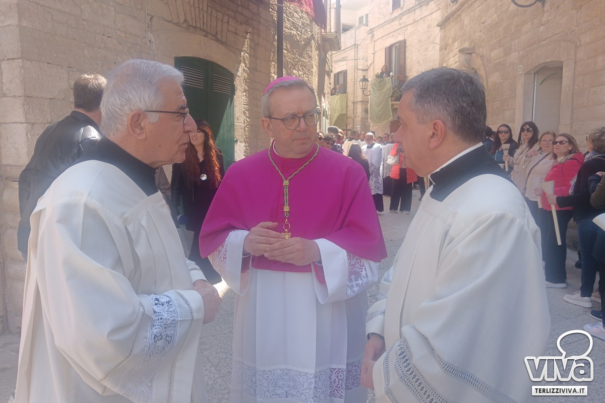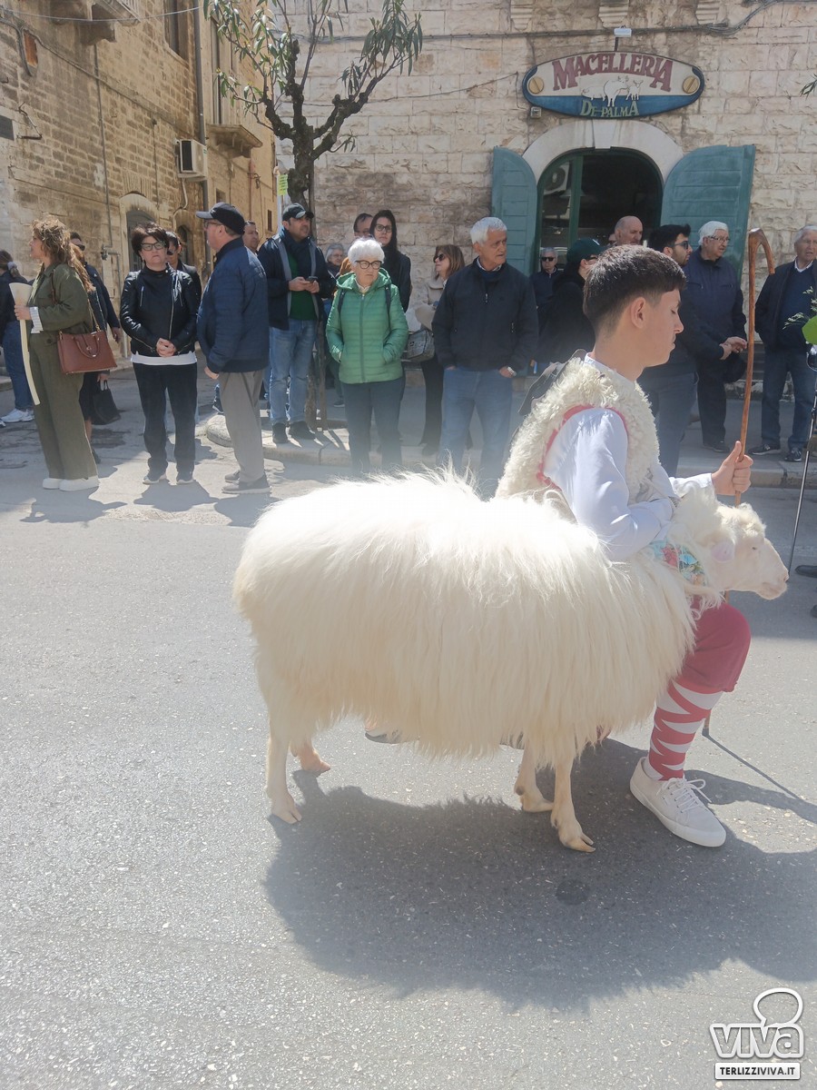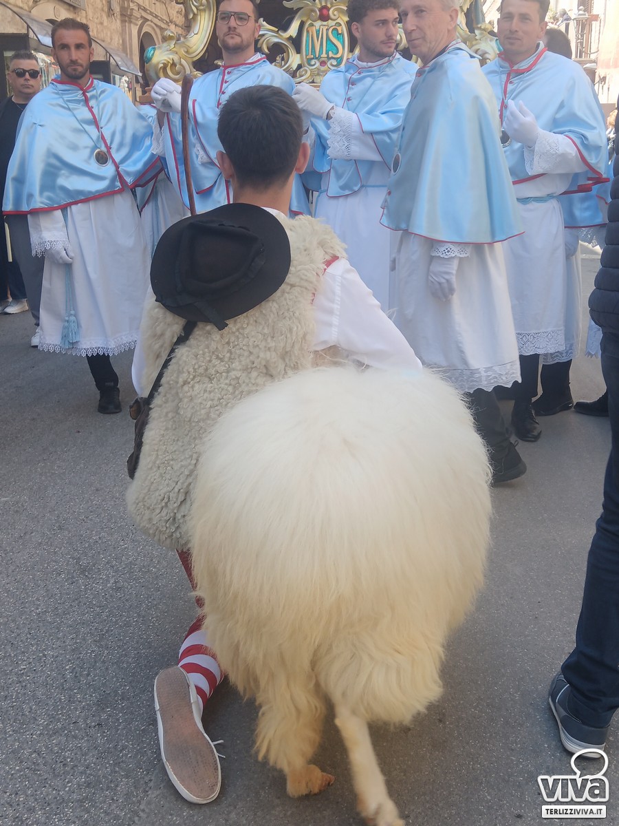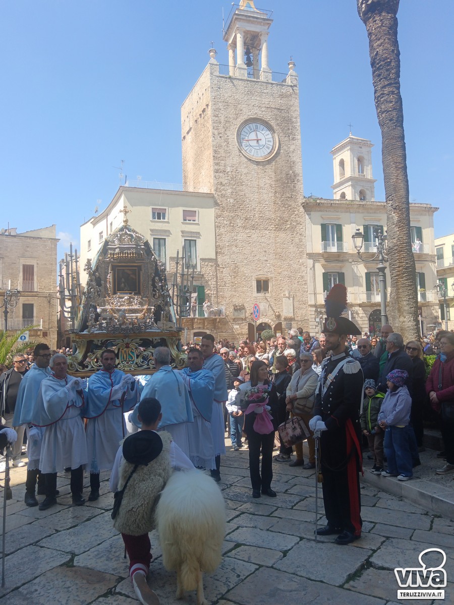 La processione per le vie di Terlizzi, che ha portato dalla Concattedrale di San Michele Arcangelo alla chiesa della vecchia Santa Maria della Stella è partita dopo il pontificale presieduto da S.E. Mons. Domenico Basile. Due ali di folla si sono aperte al suo passaggio, con la pecorella Pace, simbolo della leggenda che racconta il culto mariano a Terlizzi, insieme al pastorello, ad aprire il corteo processionale.