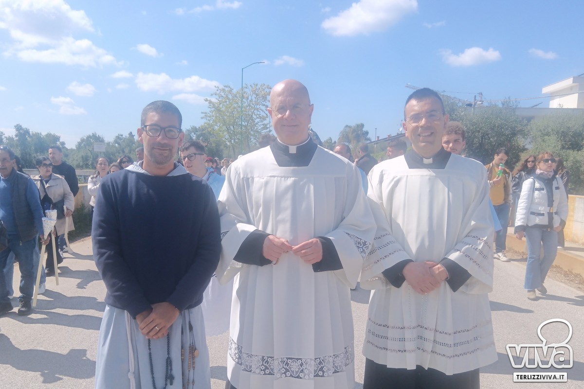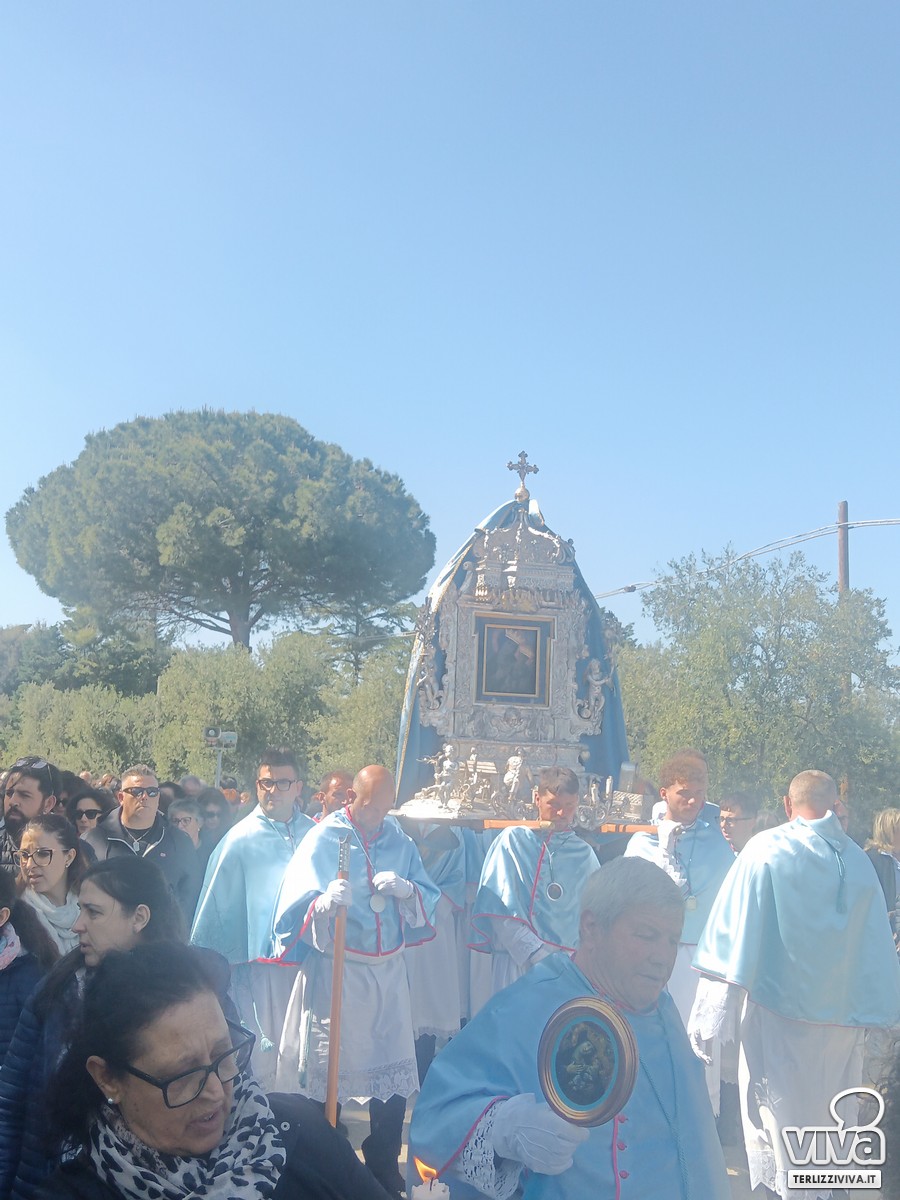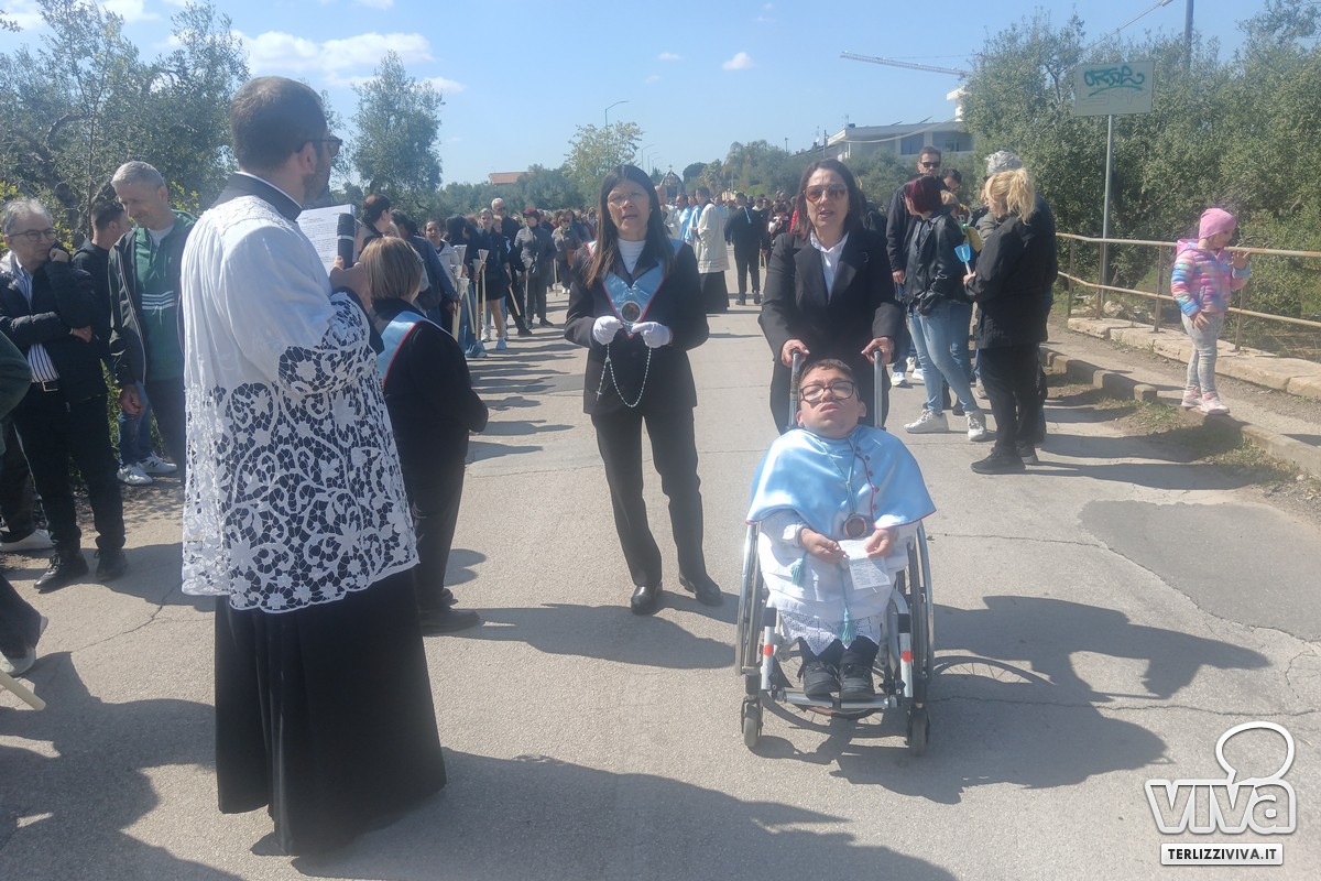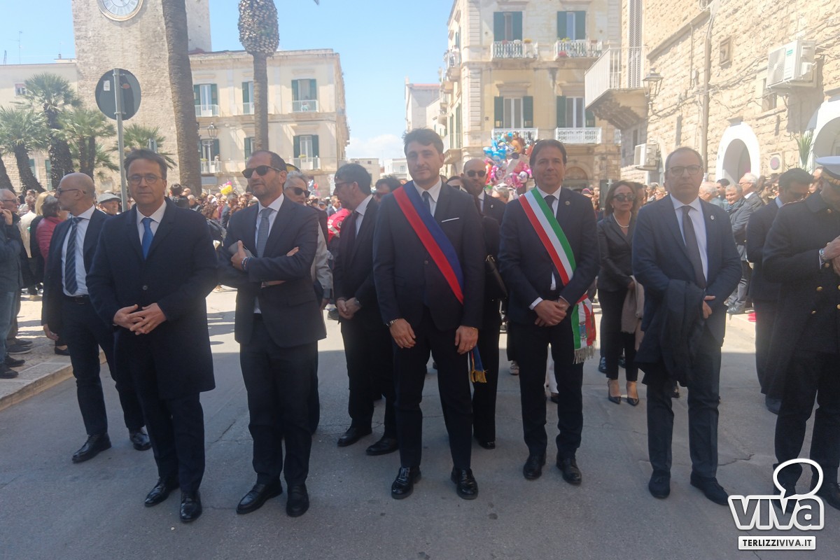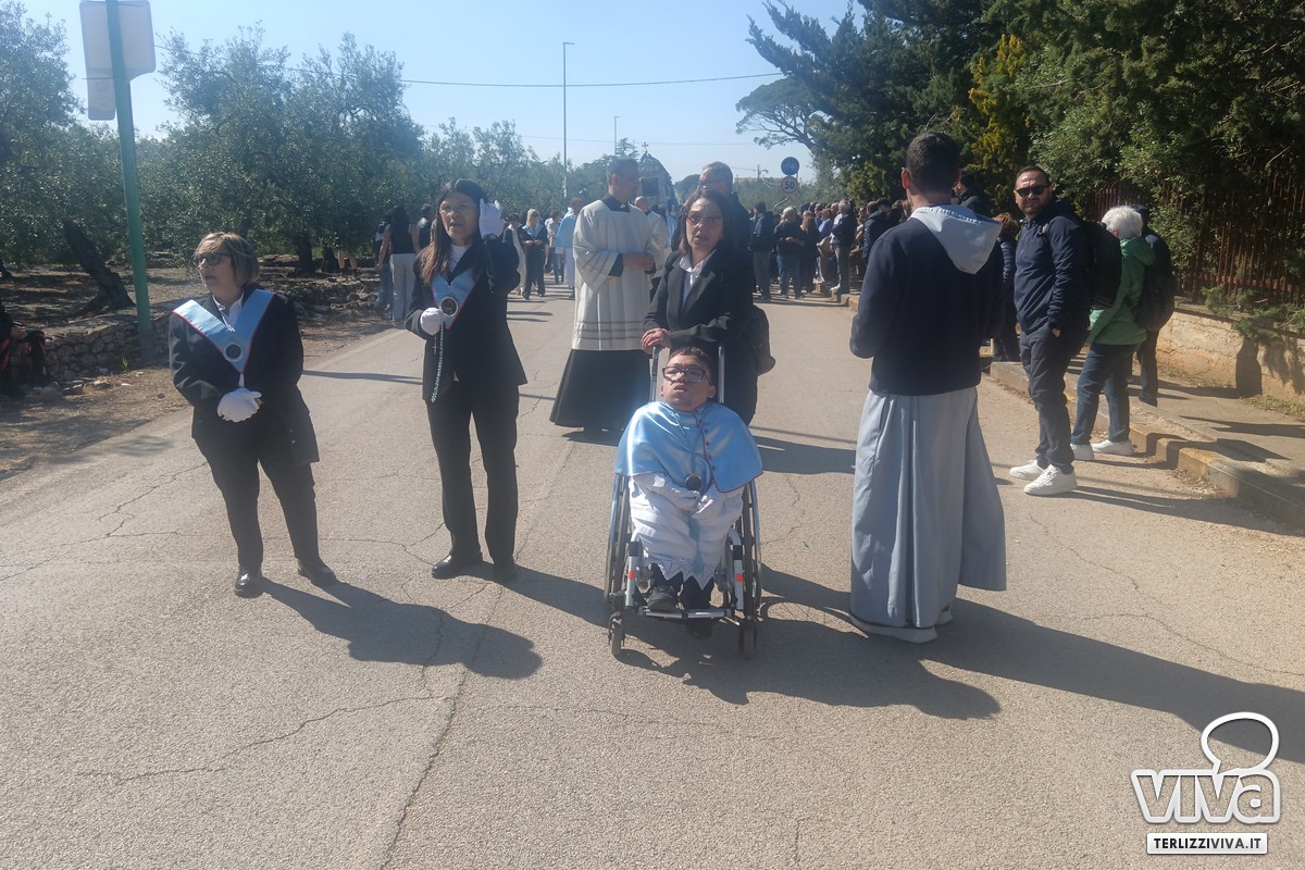 Tantissime le mani giunte lungo il percorso da Terlizzi a Sovereto, a cui erano presenti le istituzioni locali ed il Comitato Festa Maggiore guidato da Nino Barione.