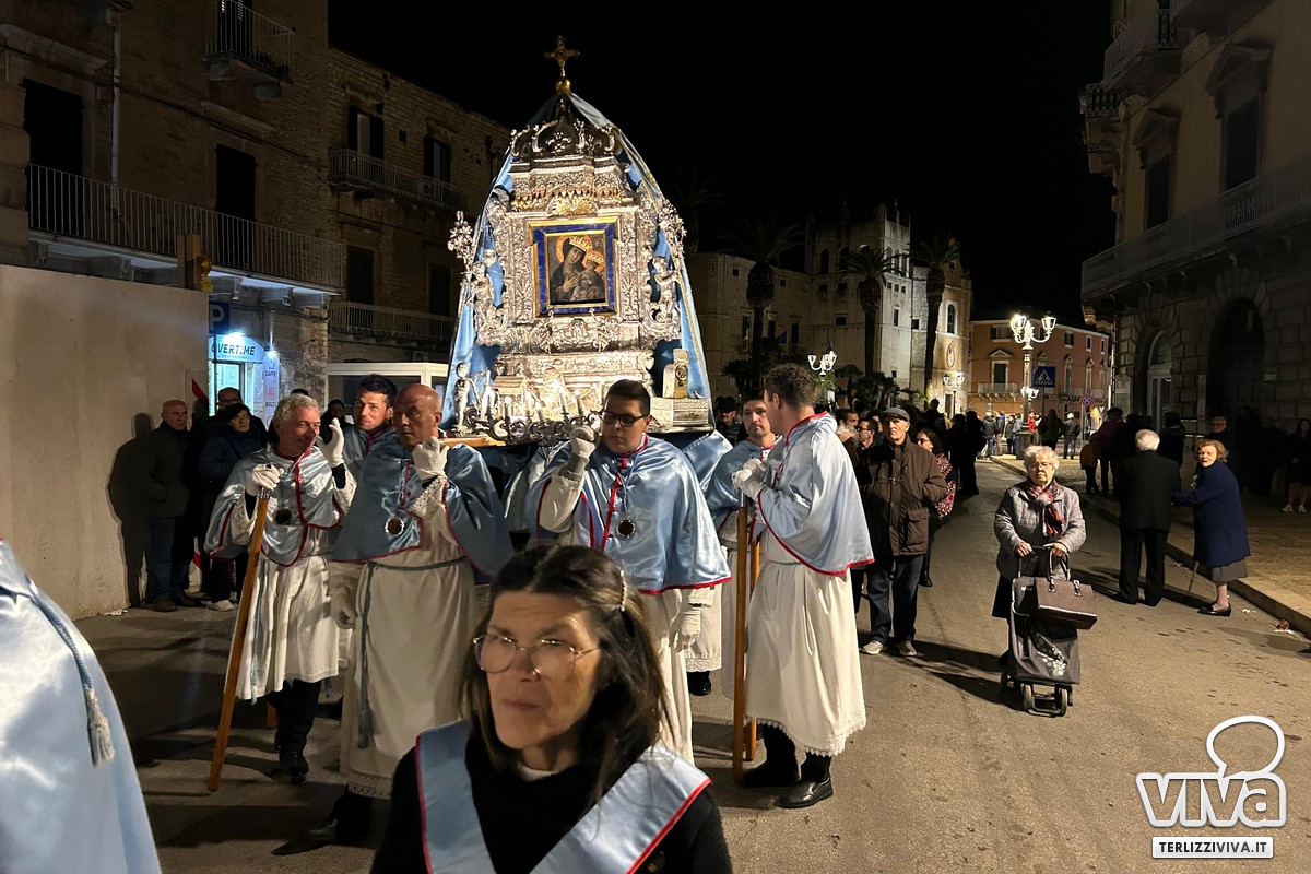 Si è rinsaldata a Terlizzi, in una data certamente storica, la fede e la commozione dei devoti nei confronti della Sacra Icona, nella certezza di un riferimento materno che veglia sempre sul suo popolo. L'intera settimana di preghiera è stata organizzata dal priore, insieme alla confraternita alla Vergine dedicata; e avrà luogo all'interno della parrocchia del Crocifisso, (luogo in cui la confraternita si riunisce) presieduta da don Francesco De Lucia. Tra i momenti salienti non mancherà la Celebrazione Eucaristica presieduta dal vescovo della diocesi S.E. Mons. Domenico Cornacchia e il giuramento dei nuovi confratelli e consorelle.