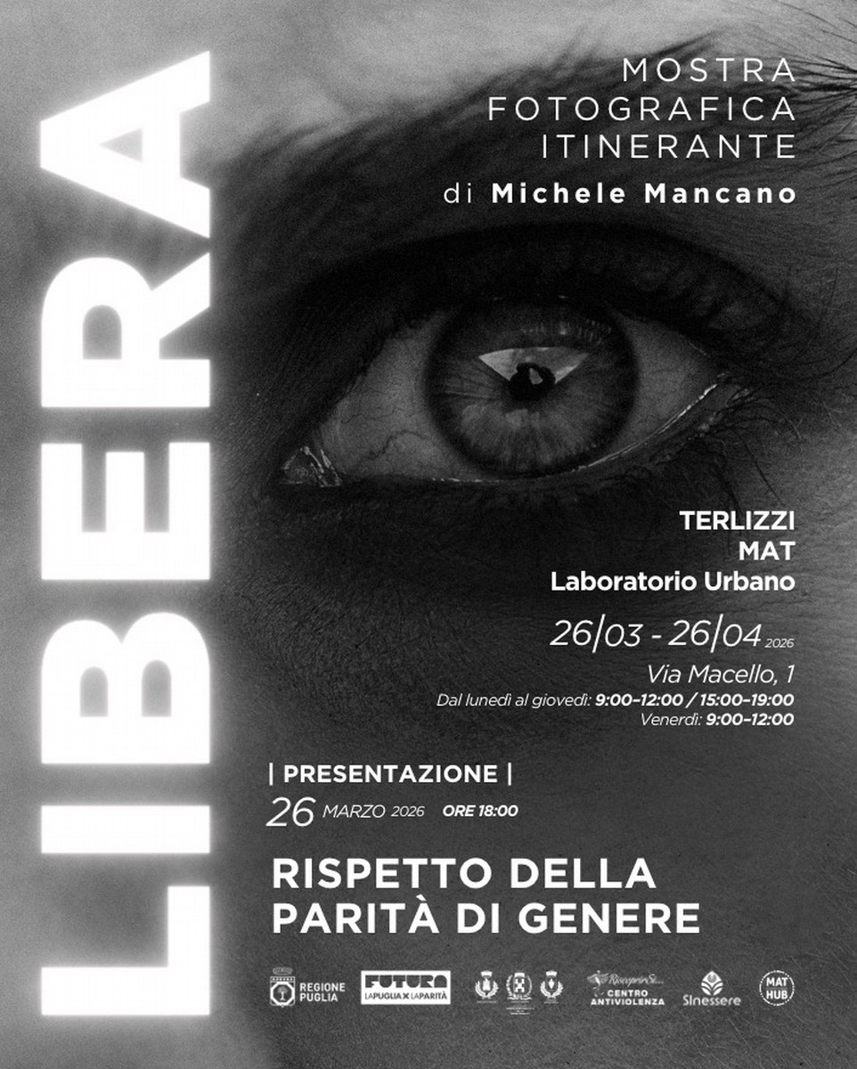 La mostra sarà ospitata a Terlizzi presso il MAT Laboratorio Urbano, in via Macello n. 1, dal 26 marzo al 26 aprile 2026, con inaugurazione prevista domani 26 marzo alle ore 18:00.