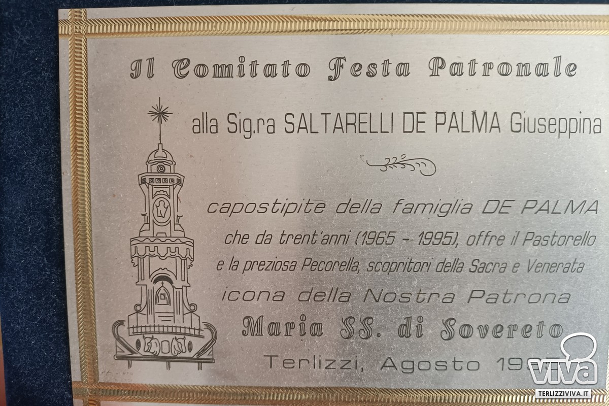 «Bastone che si è tramandato tra i quindici pastorelli che in questi anni, tra famigliari e conoscenti, hanno avuto l'onore di guidare la pecorella compagna di viaggio della Madonna di Sovereto», mentre Clemente predecessore di Giovanni ci racconta «del guanto tramandato per sei decenni e più, che va vestito sulla mano che tira la pecora». Insomma oggi Terlizzi sarà in festa grazie al popolo e grazie al cuore di chi la vive questa ricorrenza con grande devozione, autentico custode di una antica tradizione.