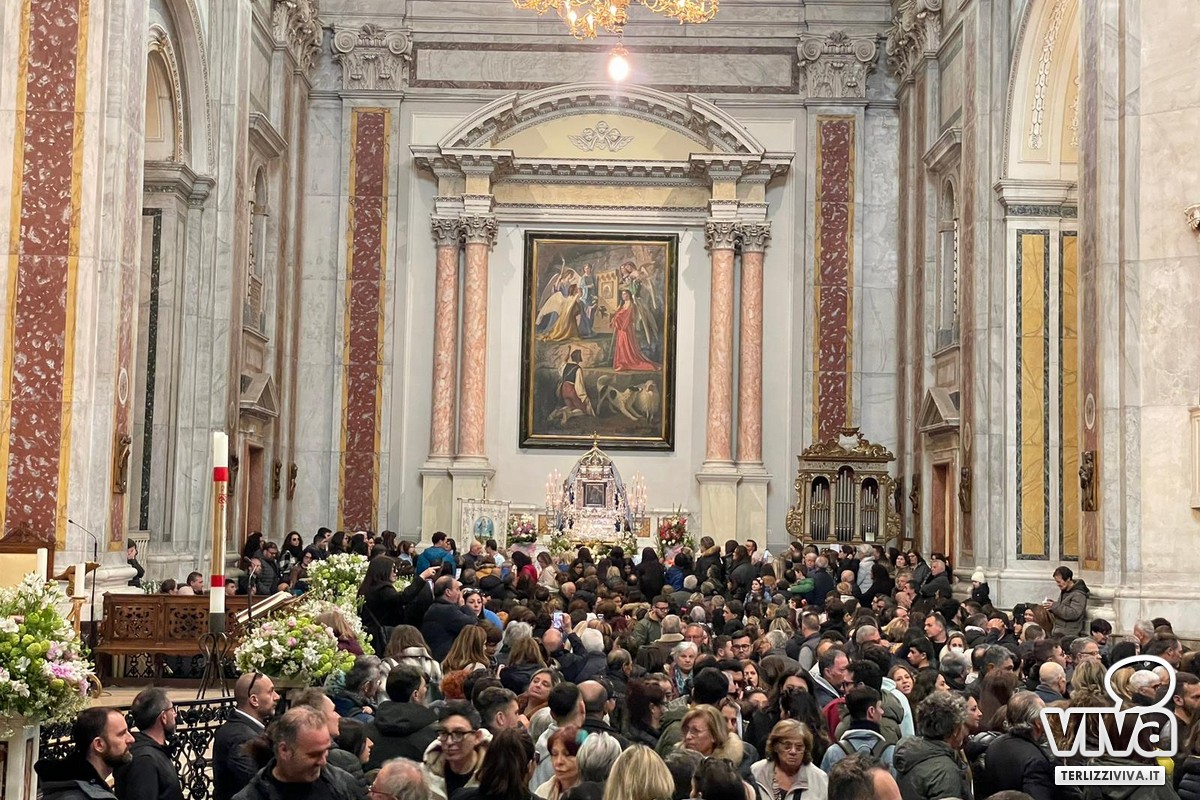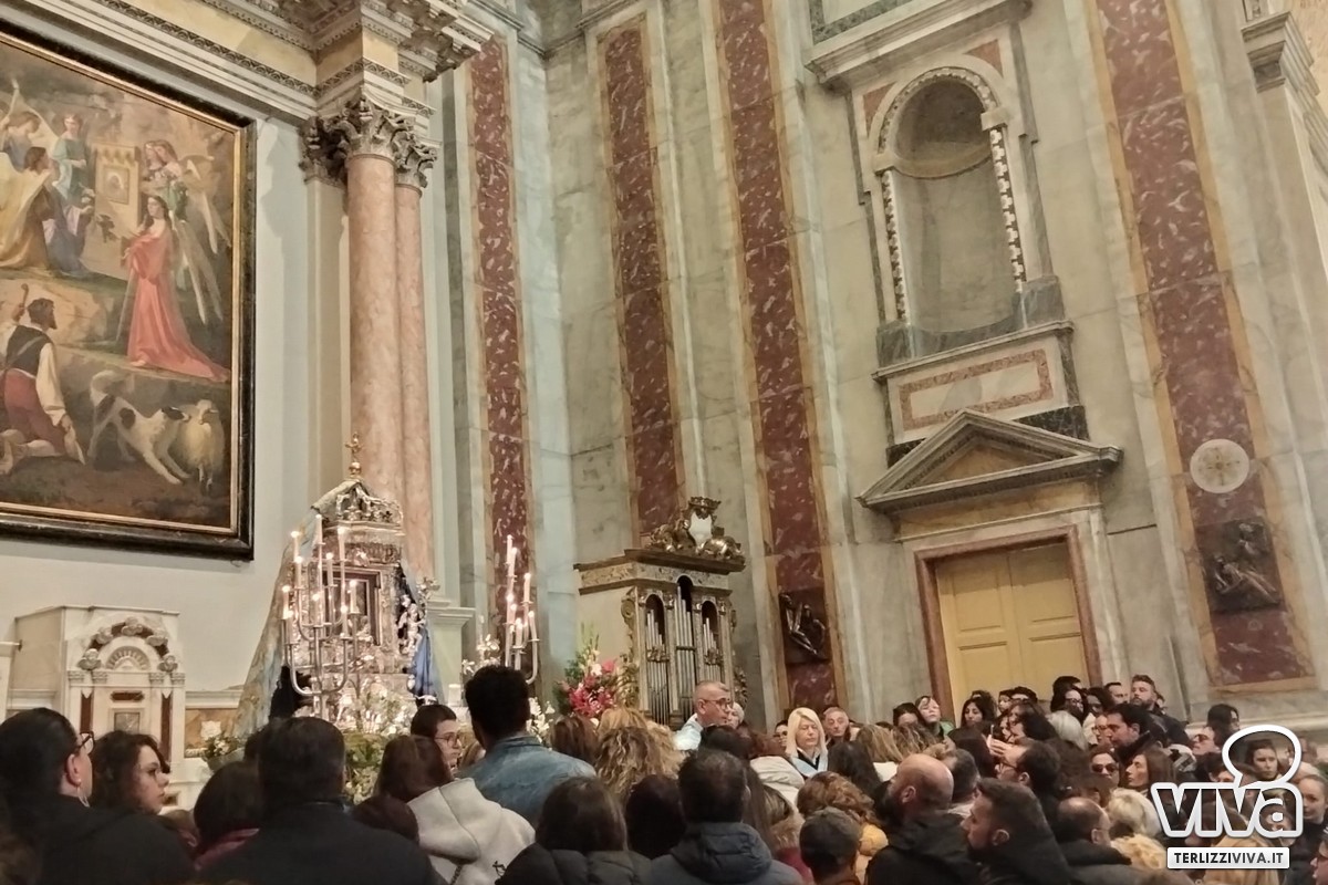 Terlizzi è in festa per Maria SS di Sovereto. Alle 14.00 di questa domenica, 16 aprile, si sono aperte le porte della Concattedrale di San Michele Arcangelo, con l'ingresso di una fiumana di fedeli che si sono riversati in chiesa.