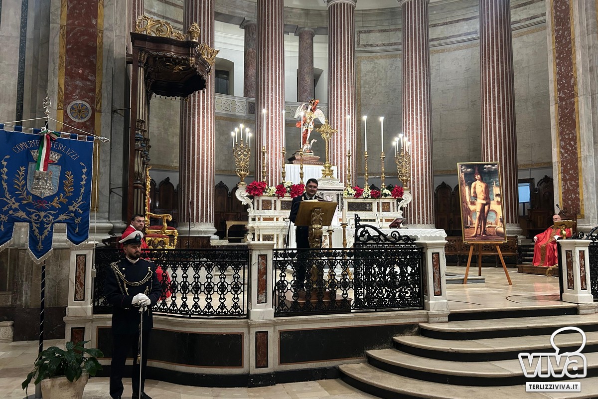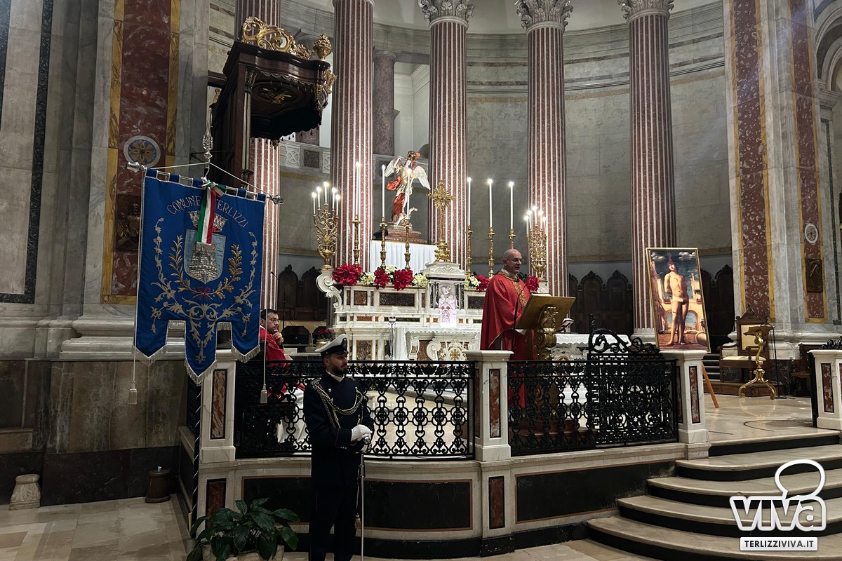 Durante la Santa Messa presieduta dal parroco don Roberto De Bartolo e concelebrata dal vicario parrocchiale don Gianluca D'Amato, sono emersi temi di coraggio, fedeltà e spirito di sacrificio che «incartavano ieri San Sebastiano e che oggi devono continuare a vivere ed ispirare l'operato quotidiano degli uomini della Polizia Locale nel presidio del territorio - sono state le parole di don Roberto durante l'omelia, ed ancora - san Sebastiano fu patrono di Terlizzi nel '600, in un periodo funestato dalle epidemie, la città riconobbe in lui un potente intercessore.