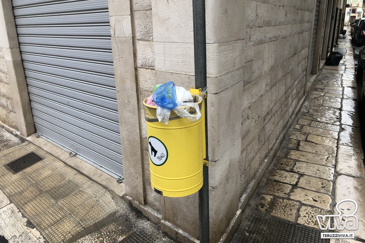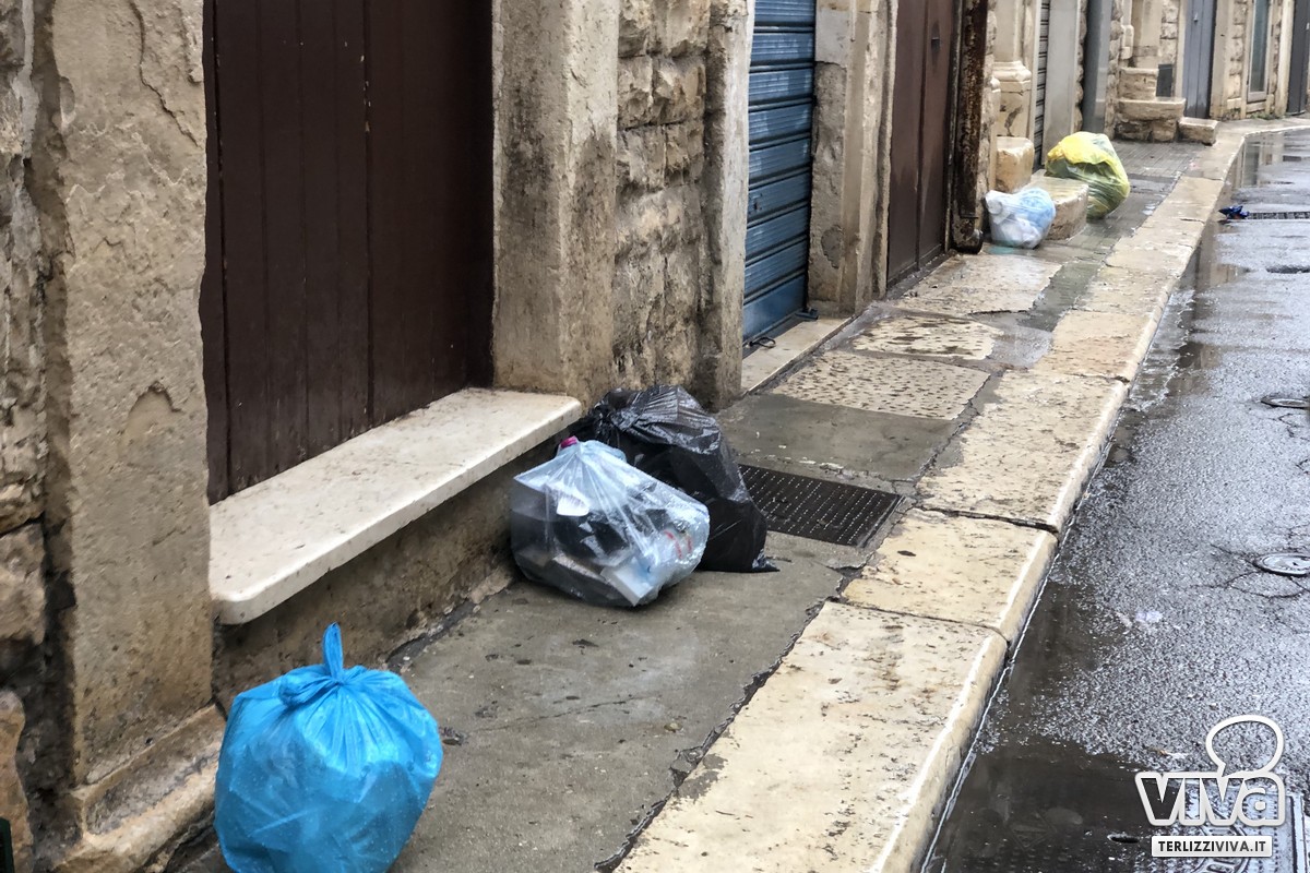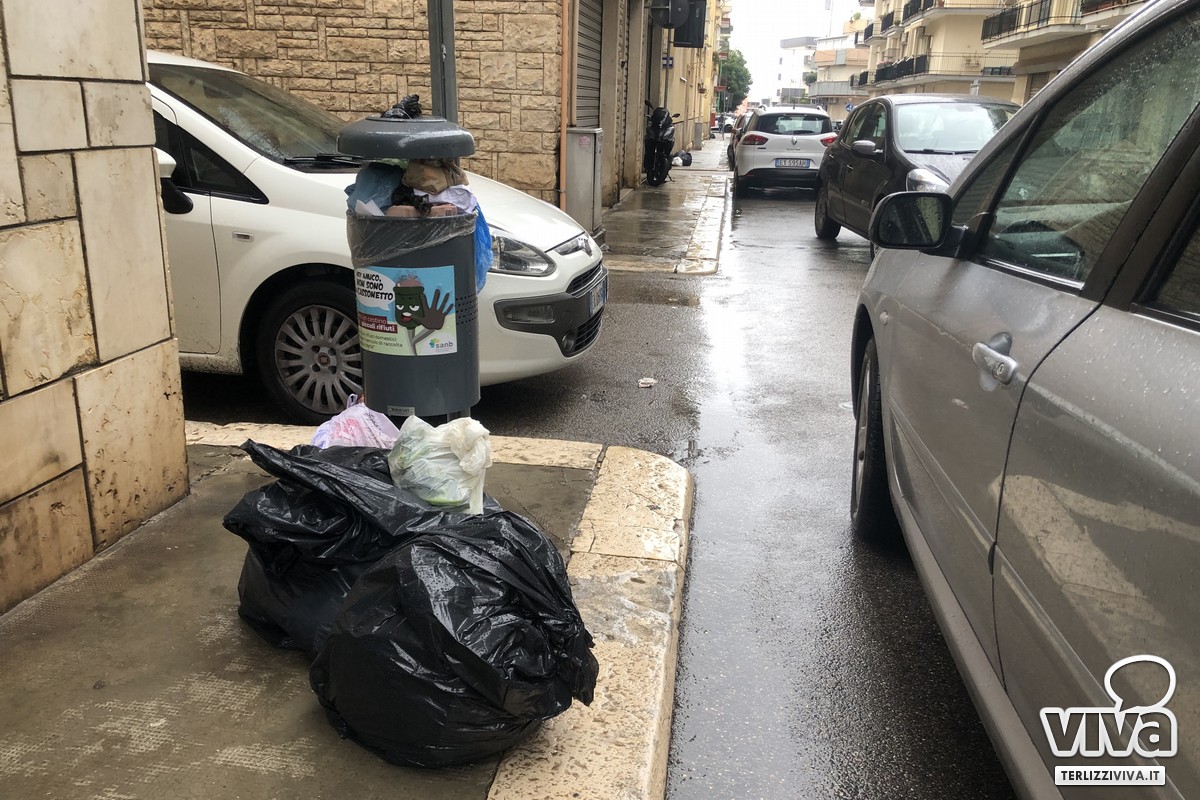 Purtroppo molti terlizzesi hanno preferito lasciare comunque i propri rifiuti fuori dalle proprie abitazioni. Un malcostume che si ripete ogni giovedì, in cui centinaia di bustoni neri fanno da cornice lungo le strade della città, bustoni che di secco residuo contengono ben poco; carta, plastica e plastica rigida, alluminio e vetro vengono puntualmente mischiati con il secco residuo e conferiti dai cittadini il giovedì sera, sbarazzandosi in un solo colpo di tutti gli scarti presenti in casa. Un conferimento che non è solo un danno all'ambiente ma incide fortemente nei costi di smaltimento che ricadono tutti nella tassa rifiuti (TARI).