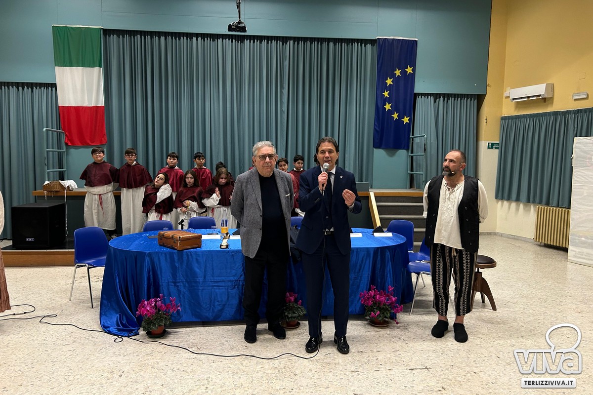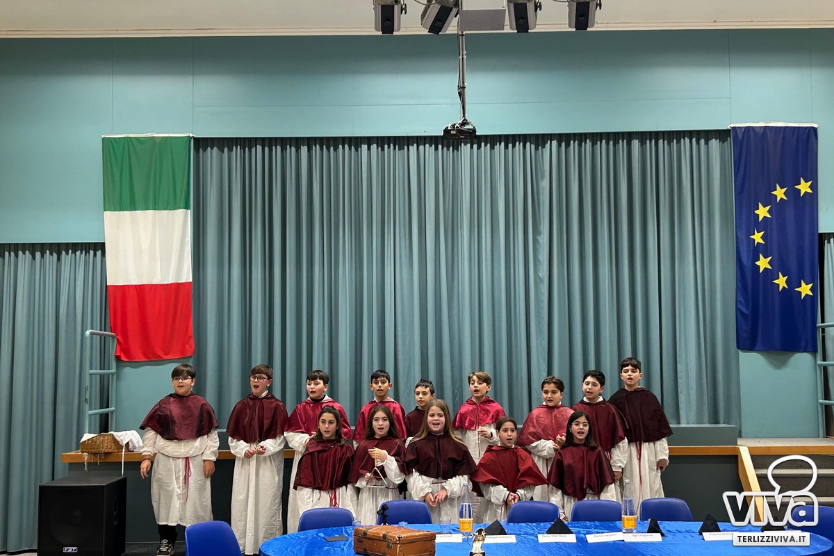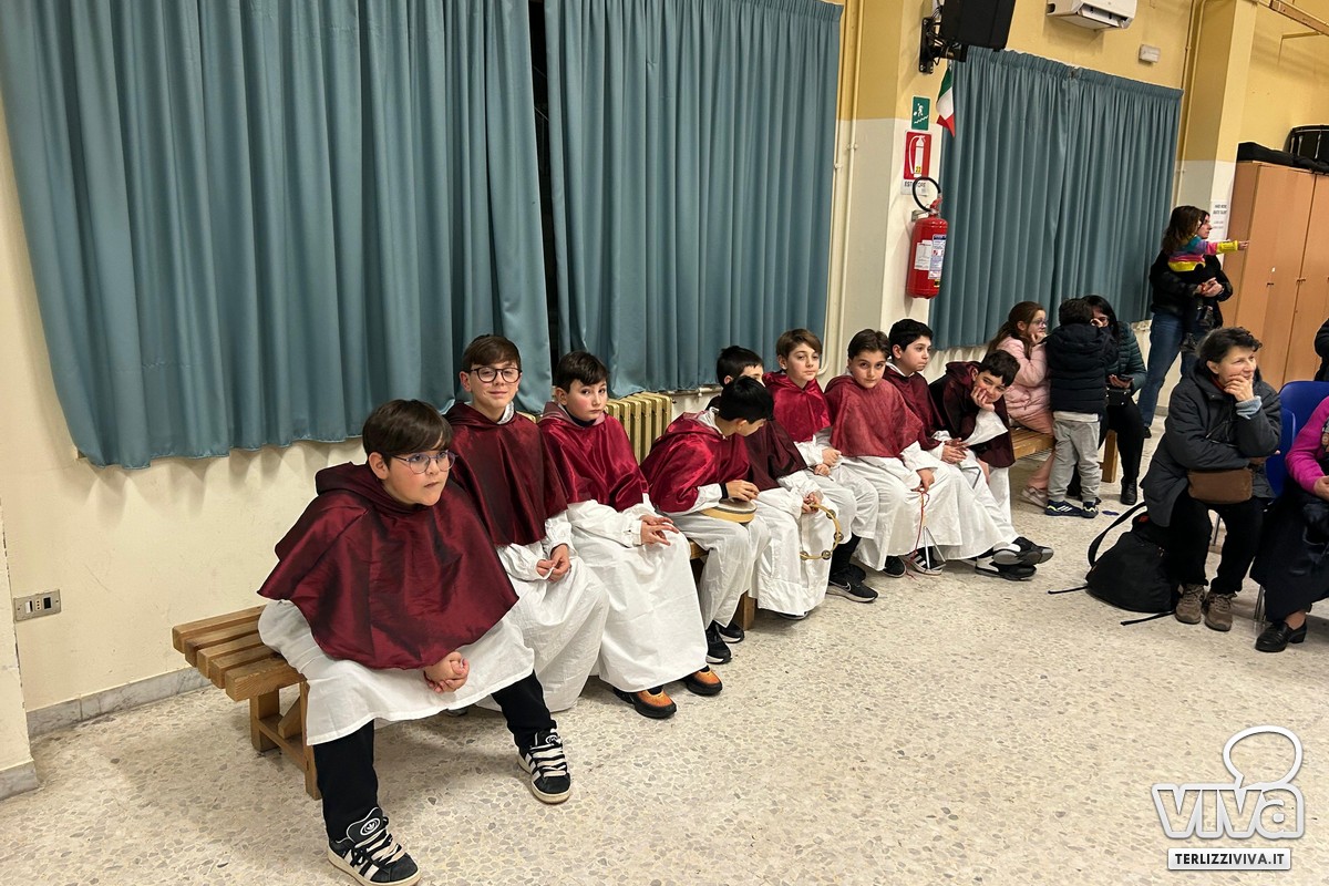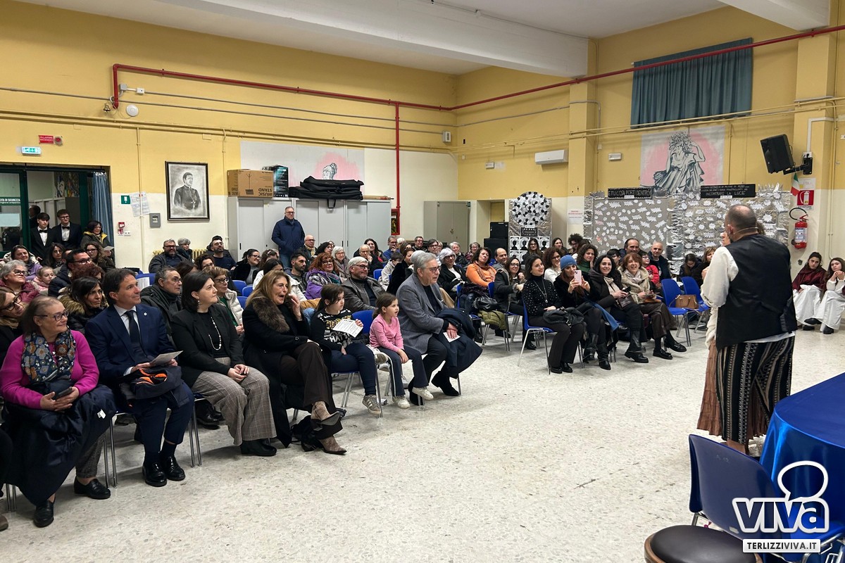 La serata, svoltasi all'interno dell'auditorium scolastico "G.Gesmundo", ha visto protagonista la compagnia teatrale "Il Carro dei Comici" con la partecipazione del regista Francesco Tammacco, dell'attrice Rosa Tarantino e del musicista Pantaleo Annese con un coinvolgente cameo parole e musica, poi suggellato dal tradizionale canto terlizzese dedicato al Santo Patrono dei bimbi, eseguito dagli alunni (quinte classi) della scuola Don Pappagallo e diretto dall'insegnante Concetta D'Orfeo.